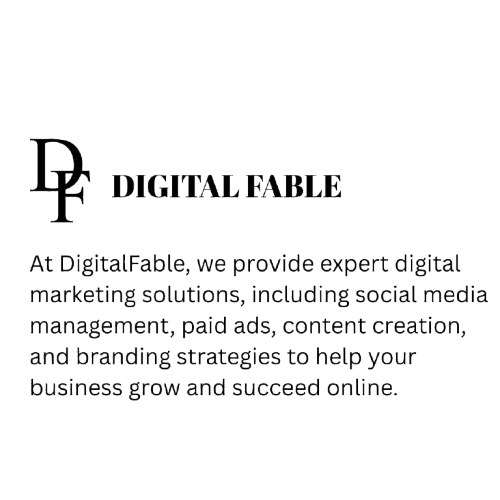 At Digital Fable, we help businesses grow through powerful Digital Marketing Strategies that make an impact. From Social Media Marketing and SEO to Branding and Online Advertising, we create customized solutions that help you stand out and connect with the right audience.